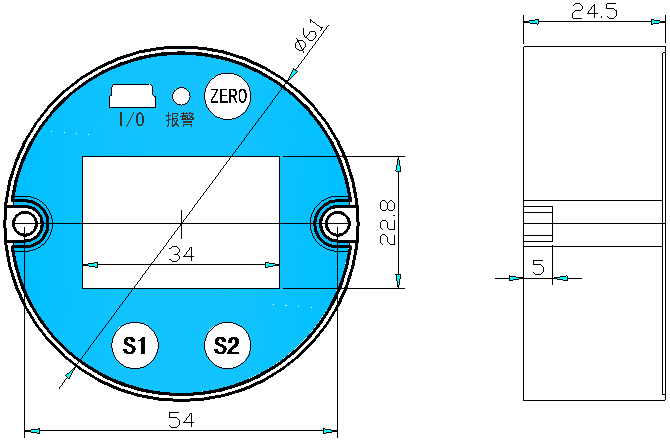 按键“ZERO”,“S1”,“S2”,其中“ZERO”按键具有确认按键功能。