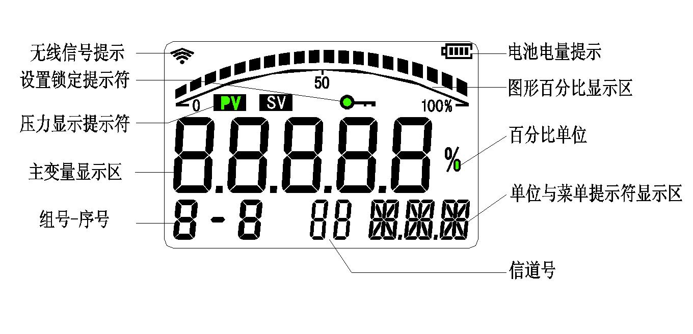 ●.丰富的液晶显示界面,显示分辨率可调整,具有电量提示,动态百分比显示,温压显示切换,通信网络信号状态显示,变送器组号,序号显示。